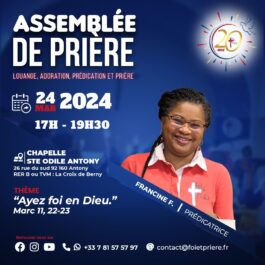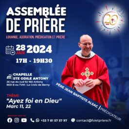 Ce dimanche 25 Février, retrouvez nous pour louer et entendre la Parole qui sera donnée par le Père Jacques BADJI, prêtre et vicaire à Suresnes. Rdv à 17h à la Chapelle Ste Odile d’Antony.