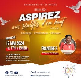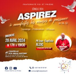 CENACLE 2024 Une mission : Se laisser transformer par le Saint Esprit qui nous invite à ASPIREZ AUX RÉALITÉS D’EN HAUT. Date : Du 7 avril au 12 mai 2024 Lieu : Chapelle Ste Odile, Antony (92) Rejoignez-nous pendant 5 […]