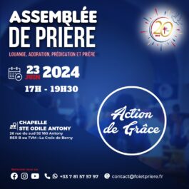 22 ANS DE FOI & DE PRIÈRE ! Dieu a été fidèle, et nous voulons partager cette joie avec vous ! Rejoignez-nous pour rendre grâce et témoigner de sa fidélité. ✨ Votre présence sera une bénédiction.
