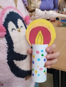 une bougie décorée qui ne s’éteint jamais, et que chaque enfant pourra rapporter à la maison pour agrémenter son coin prière !