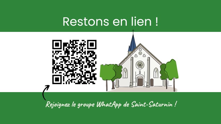 Pour garder le contact et recevoir les nouvelles de notre paroisse Saint-Saturnin : rejoignez le groupe WhatsApp en scannant le QR Code ci-dessous ou en suivant ce lien : https://chat.whatsapp.com/HxPFMqjRmnAAhyITMejFWy