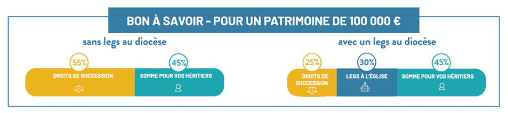 En effet, l’Etat laisse le choix, de demander qu’une partie de ces droits de successions soient versés à votre Paroisse, par le biais d’une entité juridique qu’est le Diocèse. Cette demande se fait obligatoirement à travers un testament, et doit donc se prévoir.
