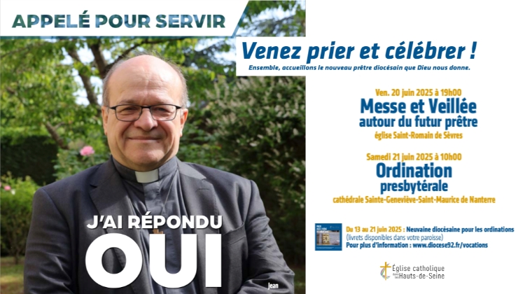 – L’ordination sacerdotale de Jean Gauthey par Mgr Rougé aura lieu le samedi 21 juin à 10h en la cathédrale Sainte-Geneviève-Saint-Maurice de Nanterre.